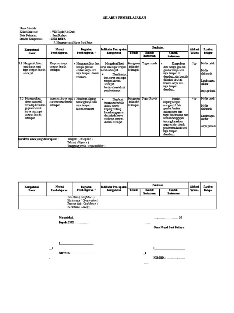 Silabus pembelajaran nama sekolah kelas/semester mata pelajaran standar kompetensi : Negeri 3 cibatu kecamatan kersamanah silabus seni budaya (seni rupa) kelas ix kurikulum 2013. Menghargai dan menghayati ajaran agama yang dianutnya ki 2 . Kompetensi inti 1 kompetensi inti 2 kompetensi inti 3 . Ix (sembilan) / i (satu) :